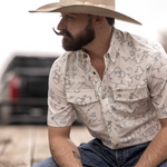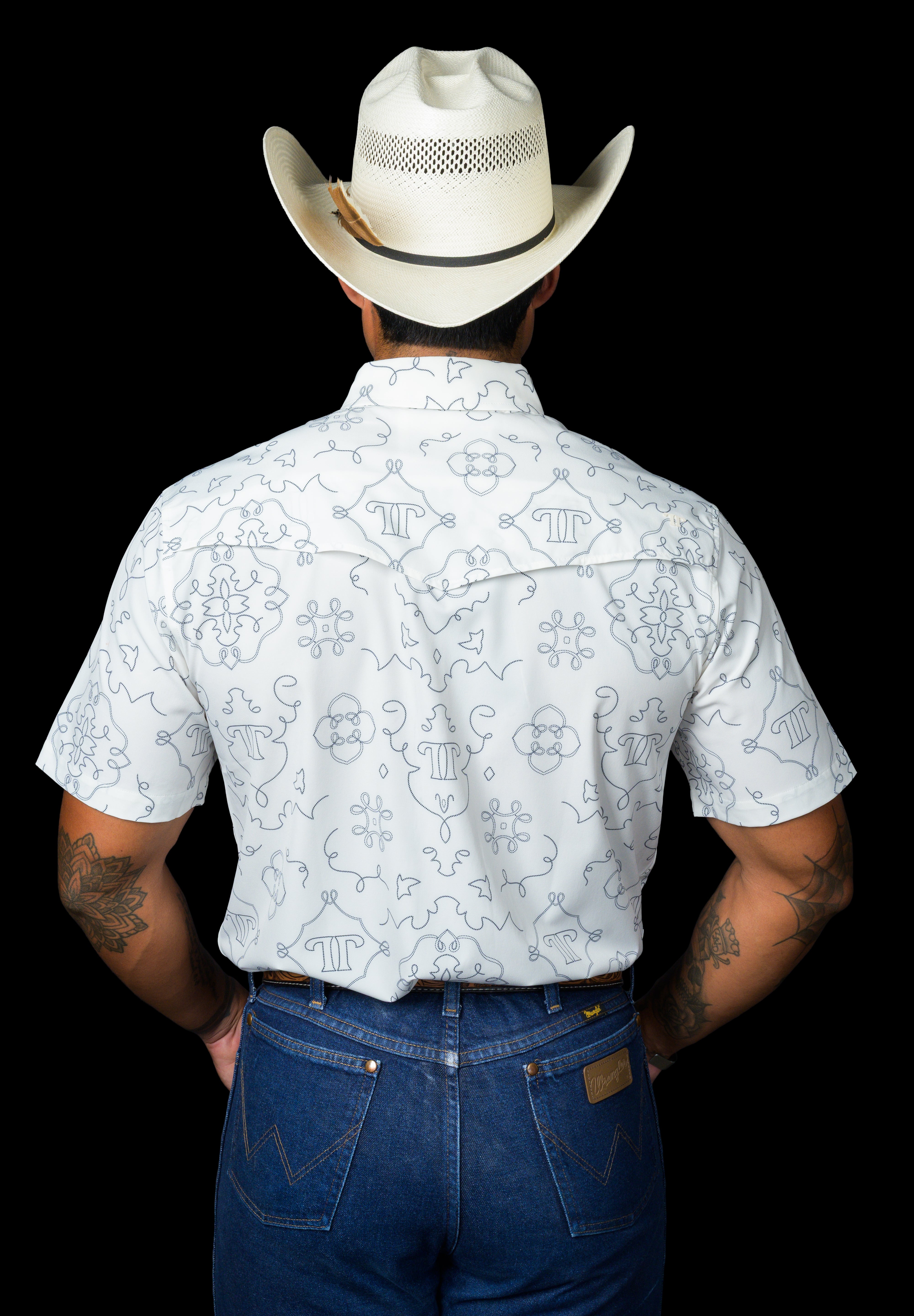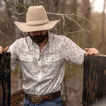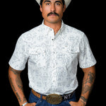 A crisp white base paired with a subtle, refined pattern for a clean, elevated western look. Sharp without being loud, this one is built for versatility from everyday wear to nights out. Crafted from a lightweight, breathable fabric that delivers all-day comfort with a polished finish.