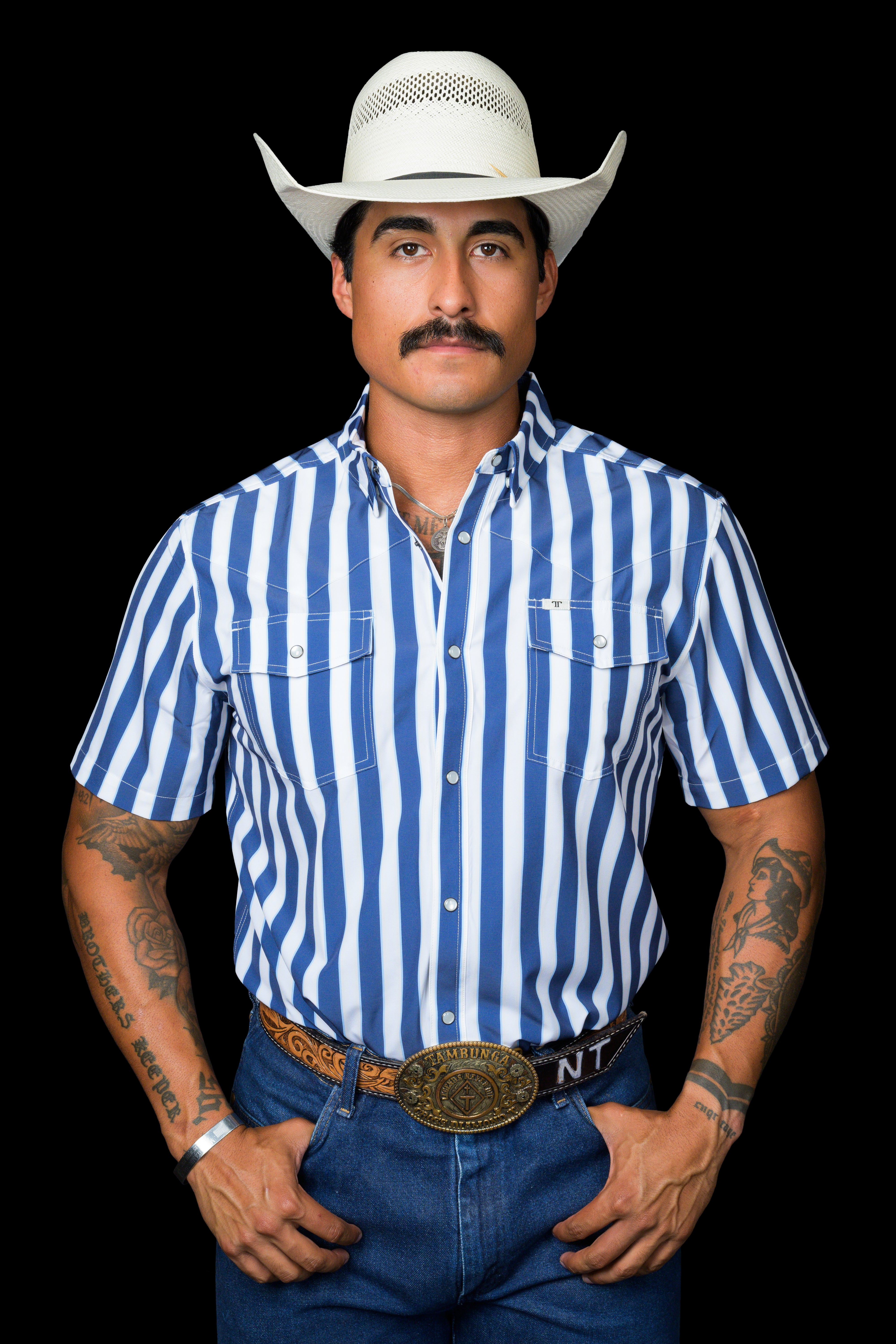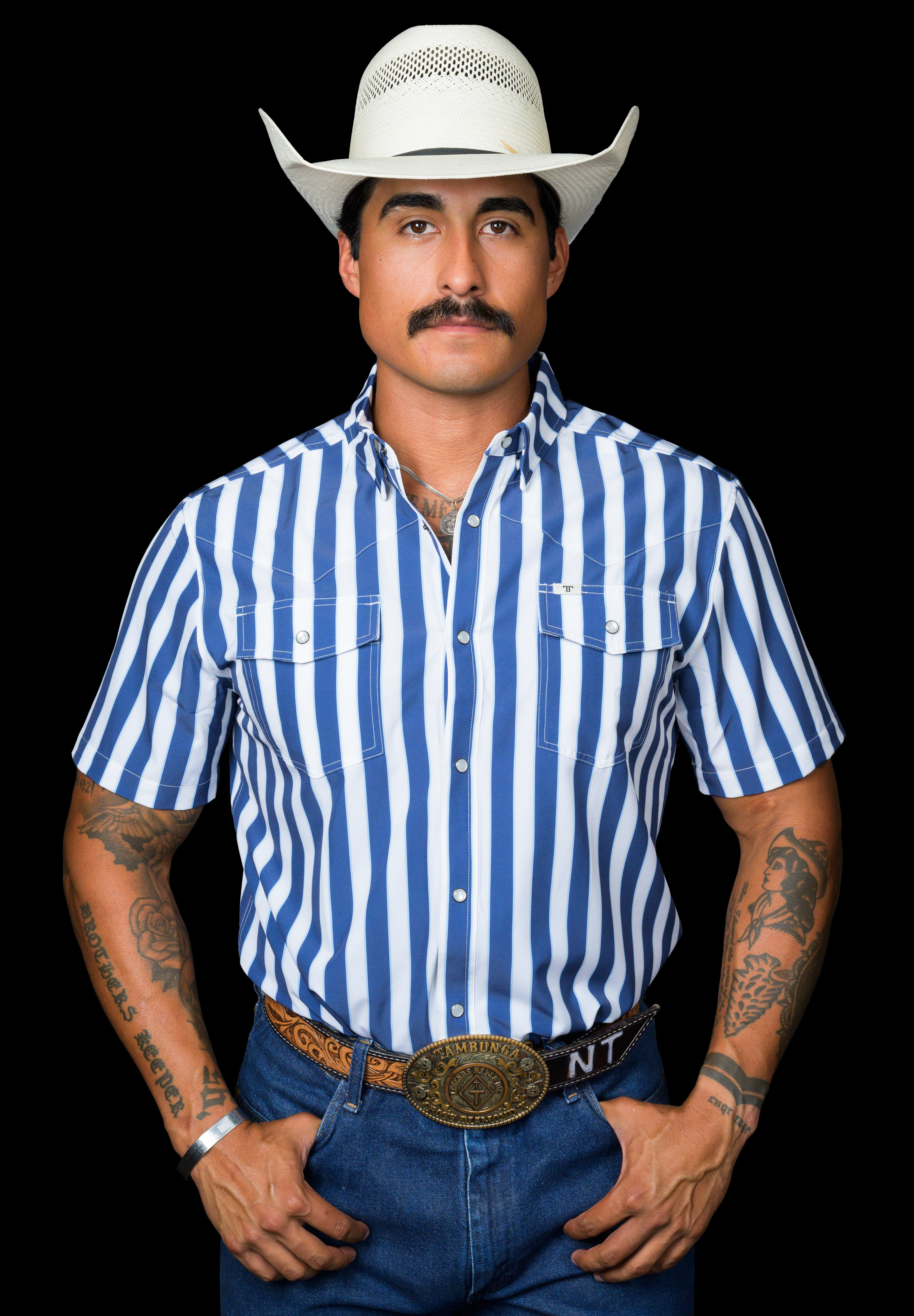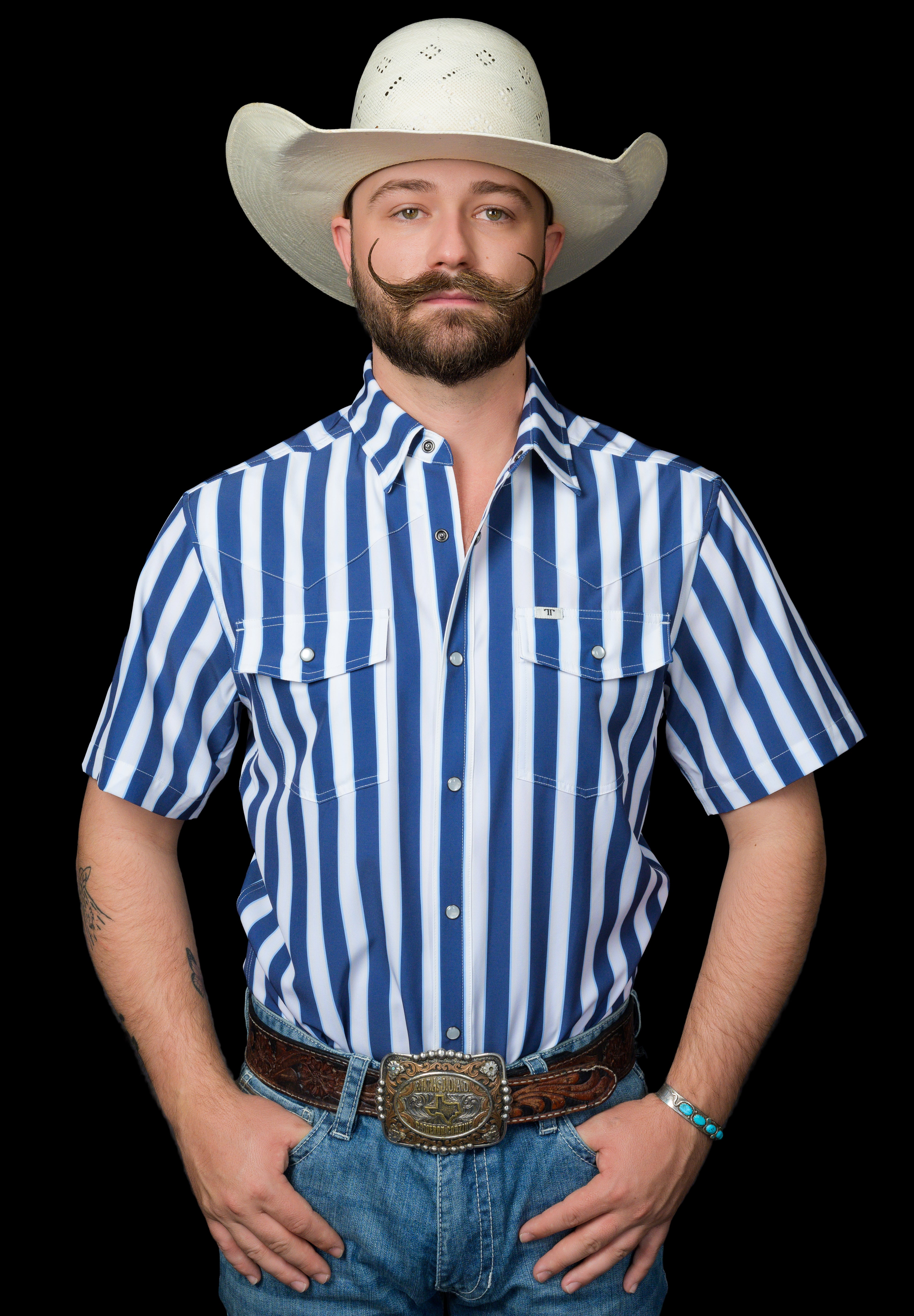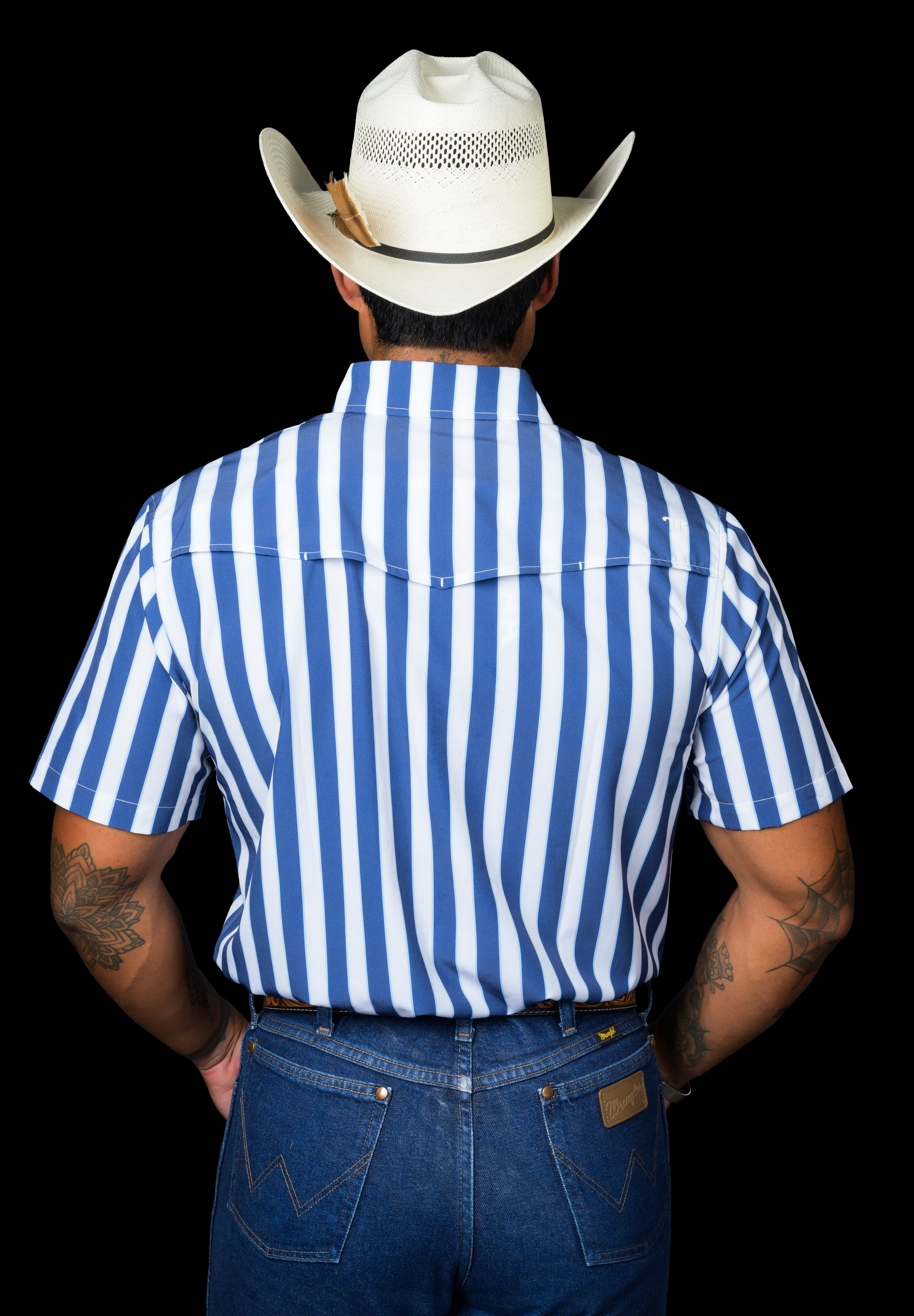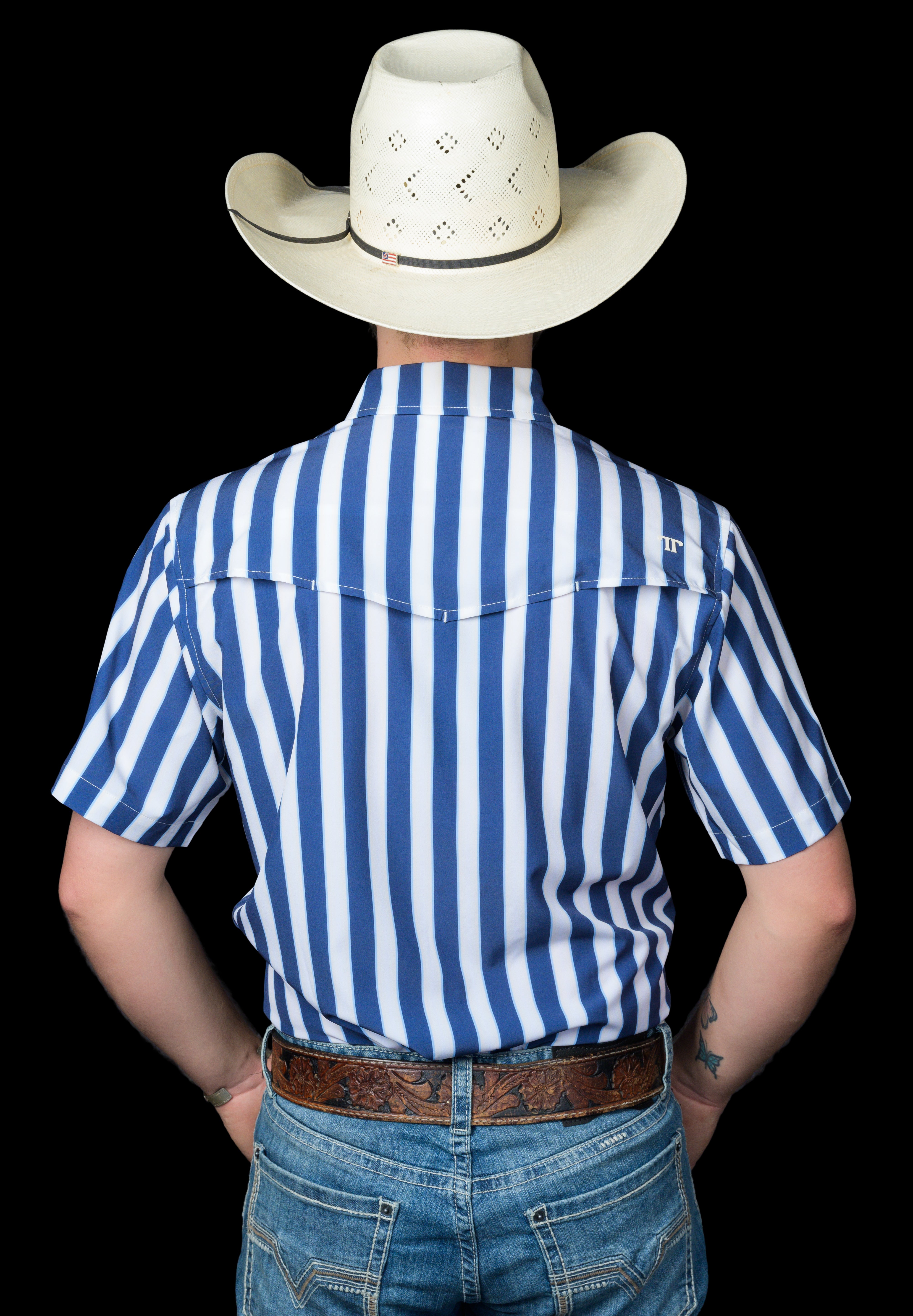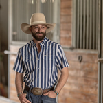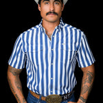 A bold blue stripe with clean contrast detailing for a sharp, confident western look. Designed to stand out while staying classic, this pattern brings a fresh edge to a timeless silhouette. Crafted from a lightweight, breathable fabric that keeps you cool, comfortable, and polished all day long.