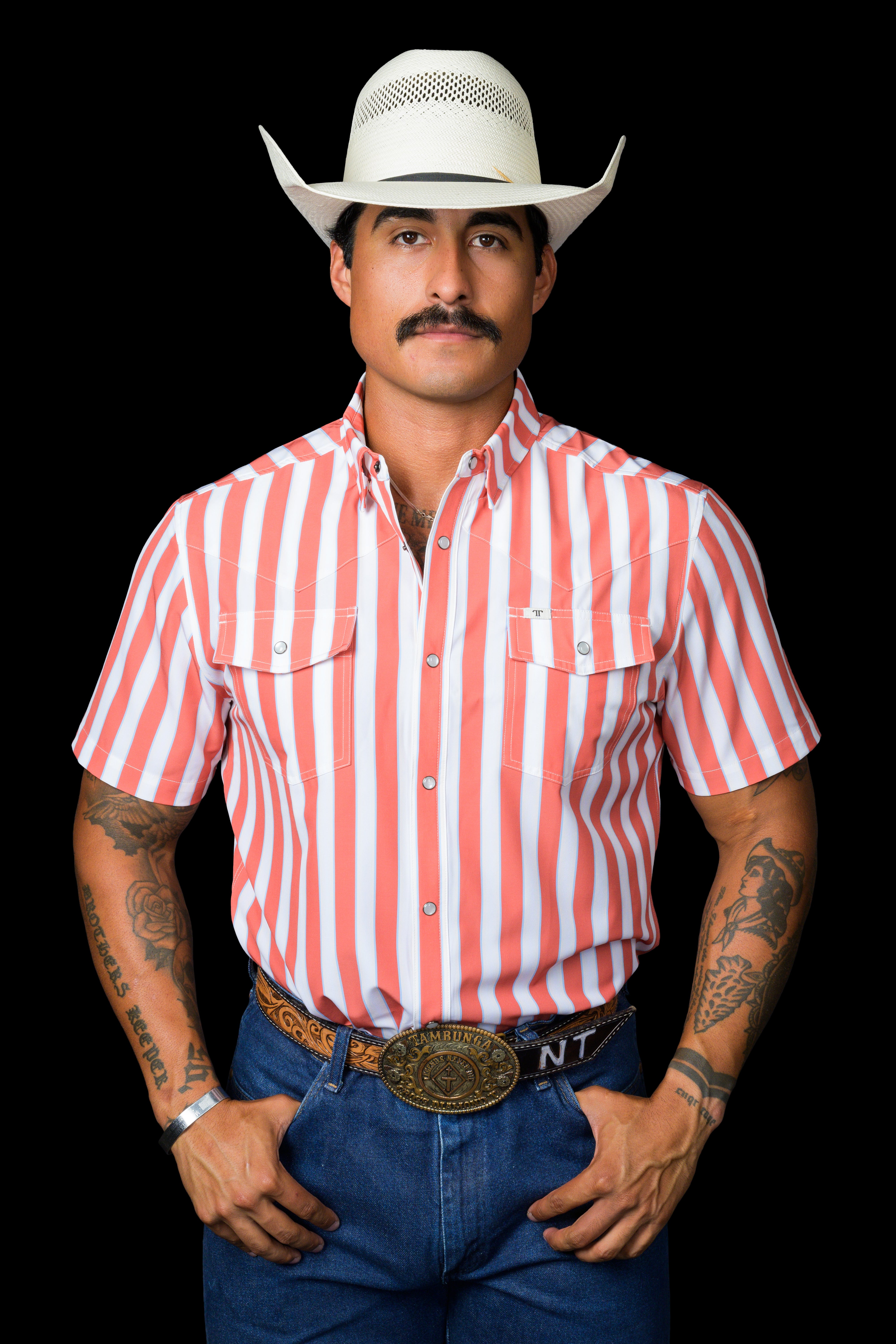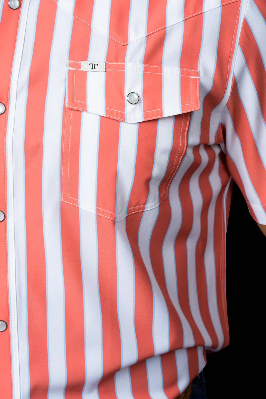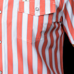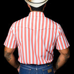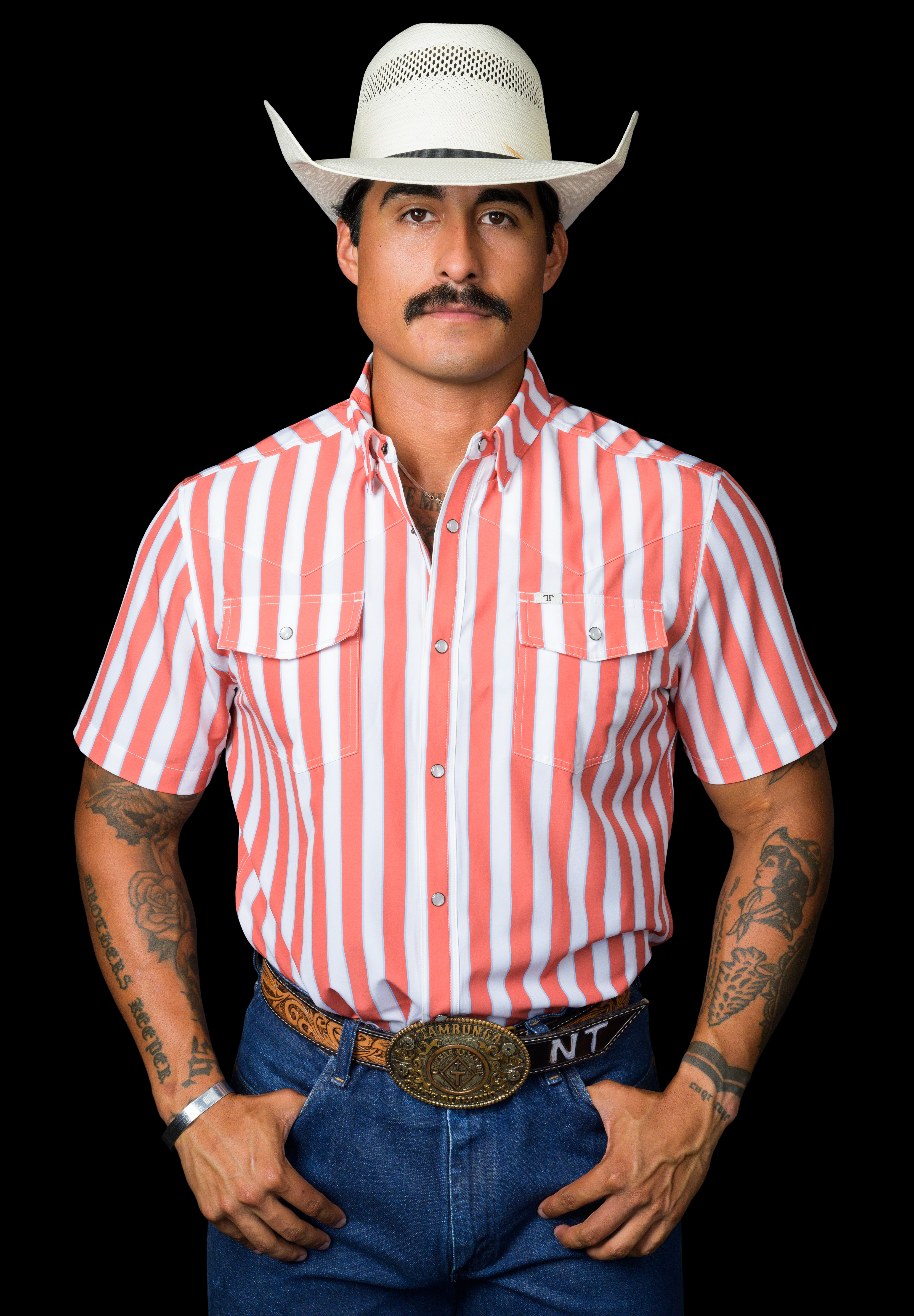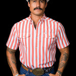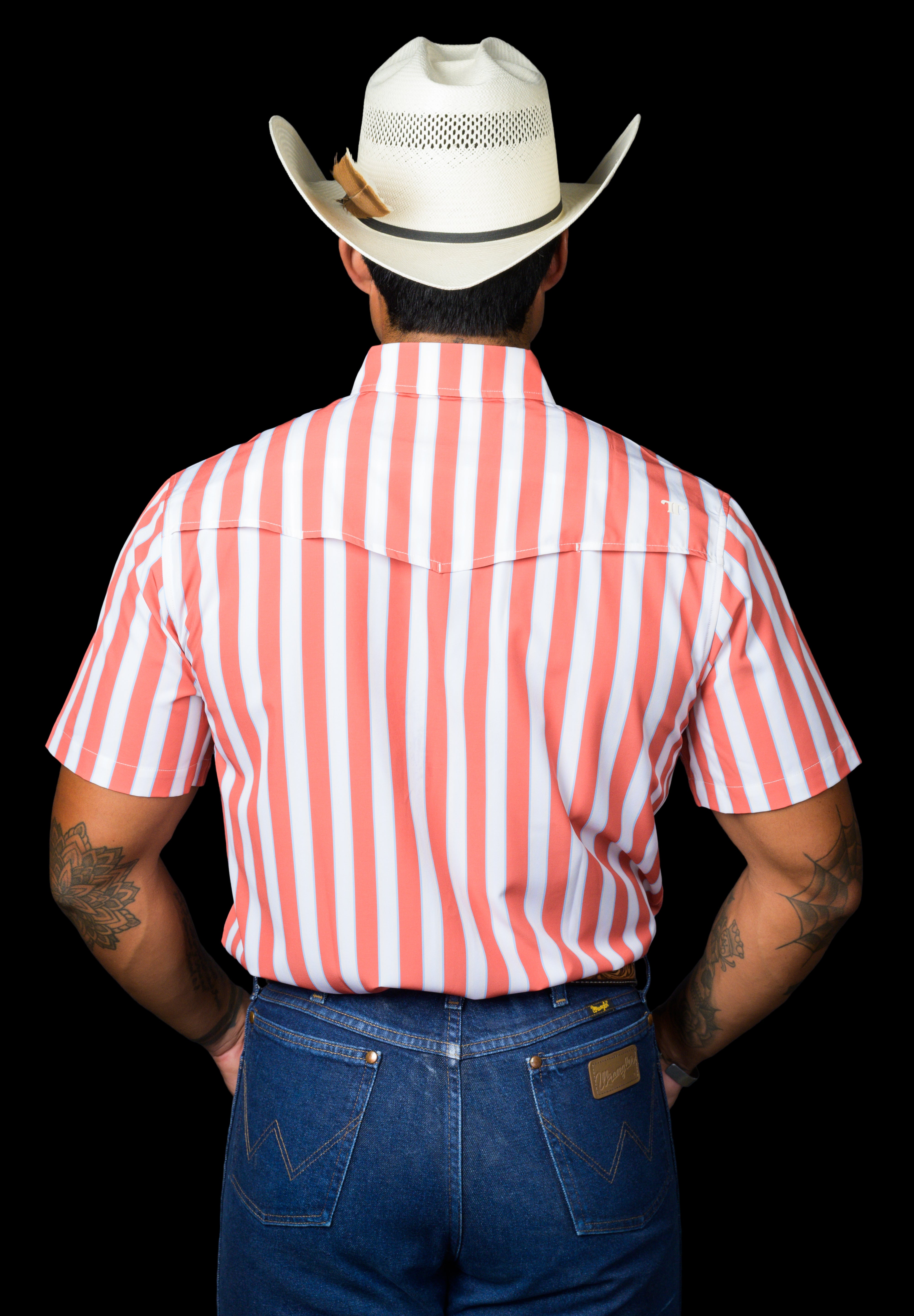 A bold salmon stripe with clean contrast detailing for a sharp, confident western look. Designed to stand out while staying classic, this pattern brings a fresh edge to a timeless silhouette. Crafted from a lightweight, breathable fabric that keeps you cool, comfortable, and polished all day long.