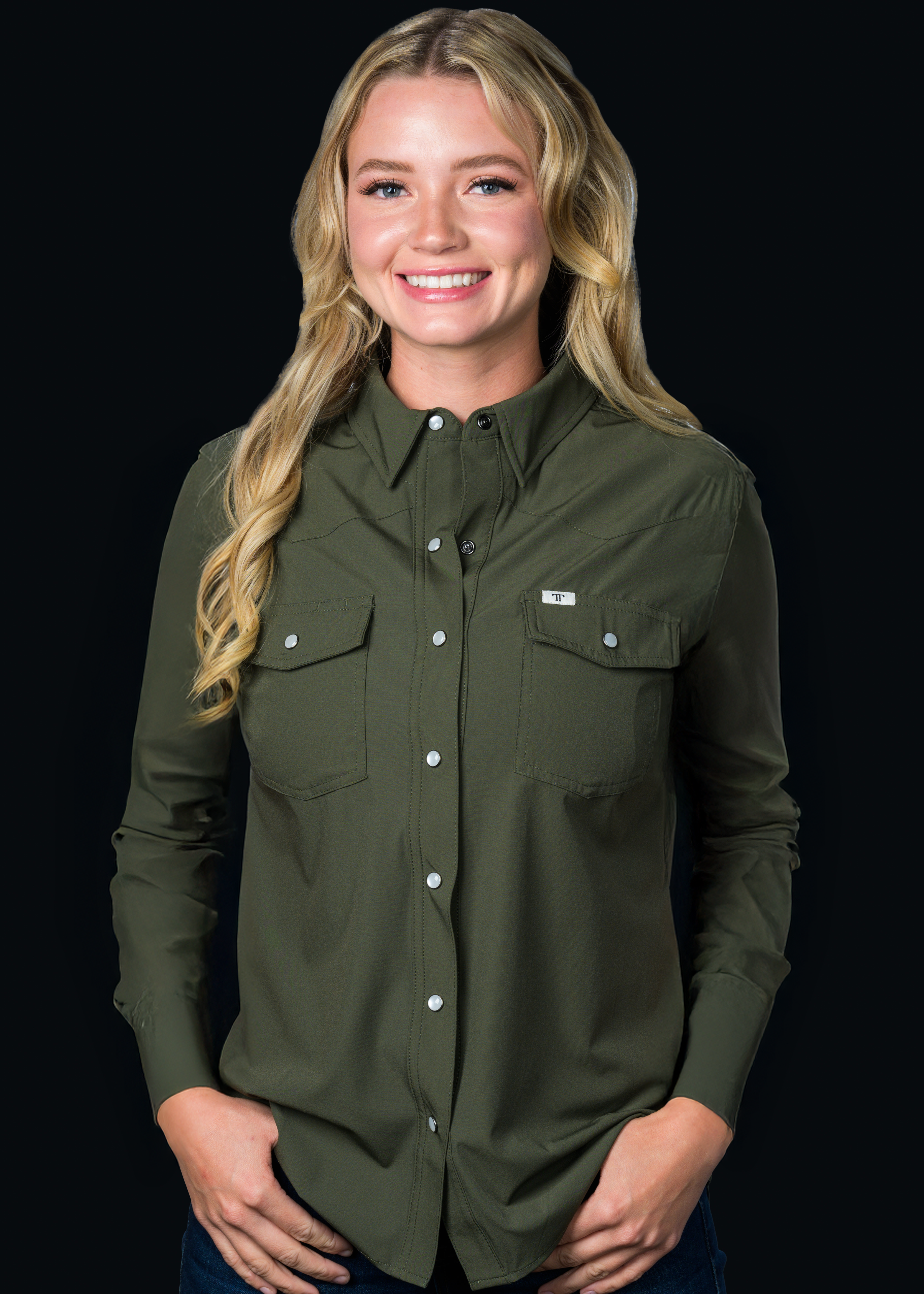 CORE - Women's Olive Green Long Sleeve Snap Shirt