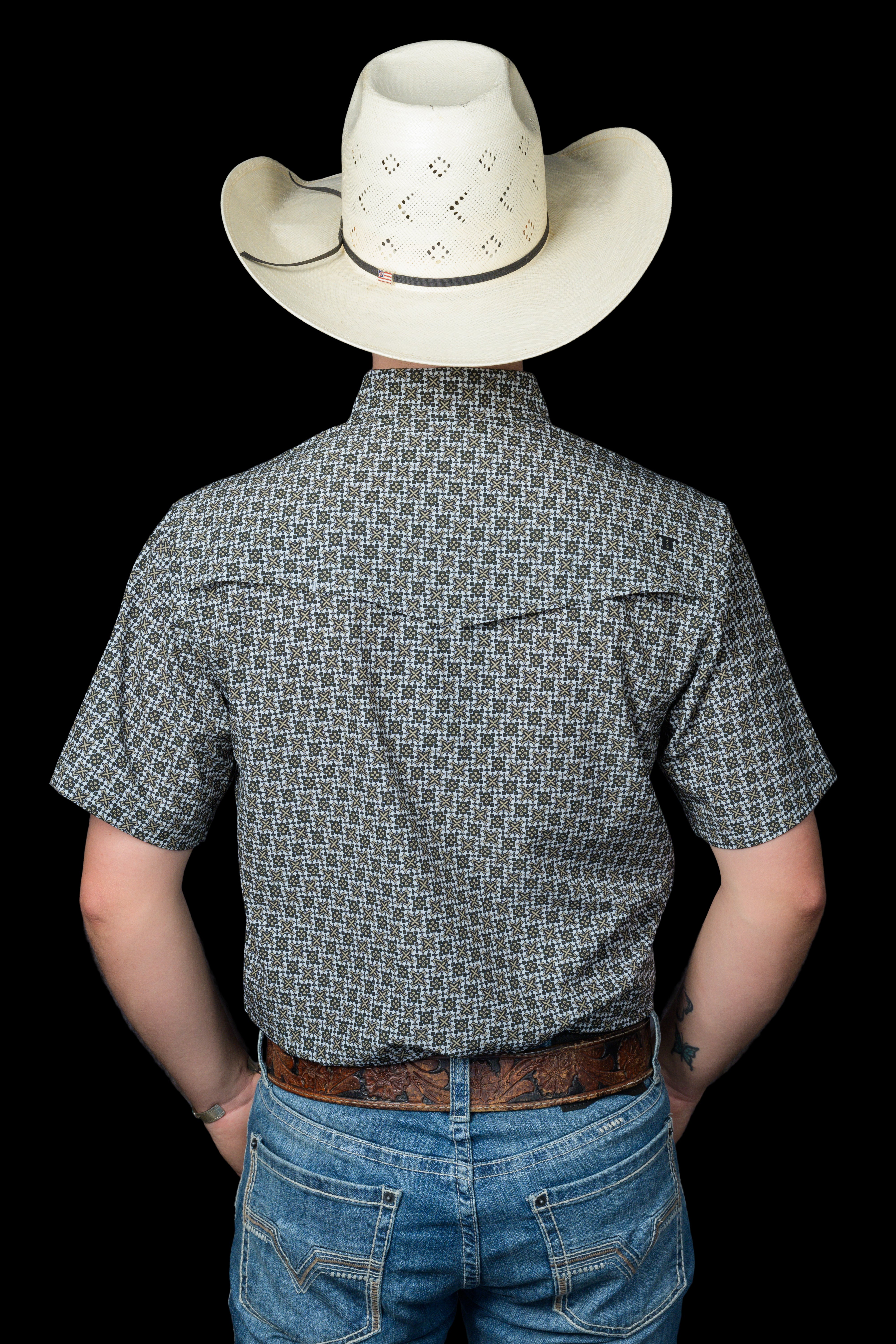 A muted green micro-pattern that adds texture without overpowering the look. Crafted in our short-sleeve snap with breathable, flexible fabric, it’s an everyday western staple designed for comfort, movement, and versatility.