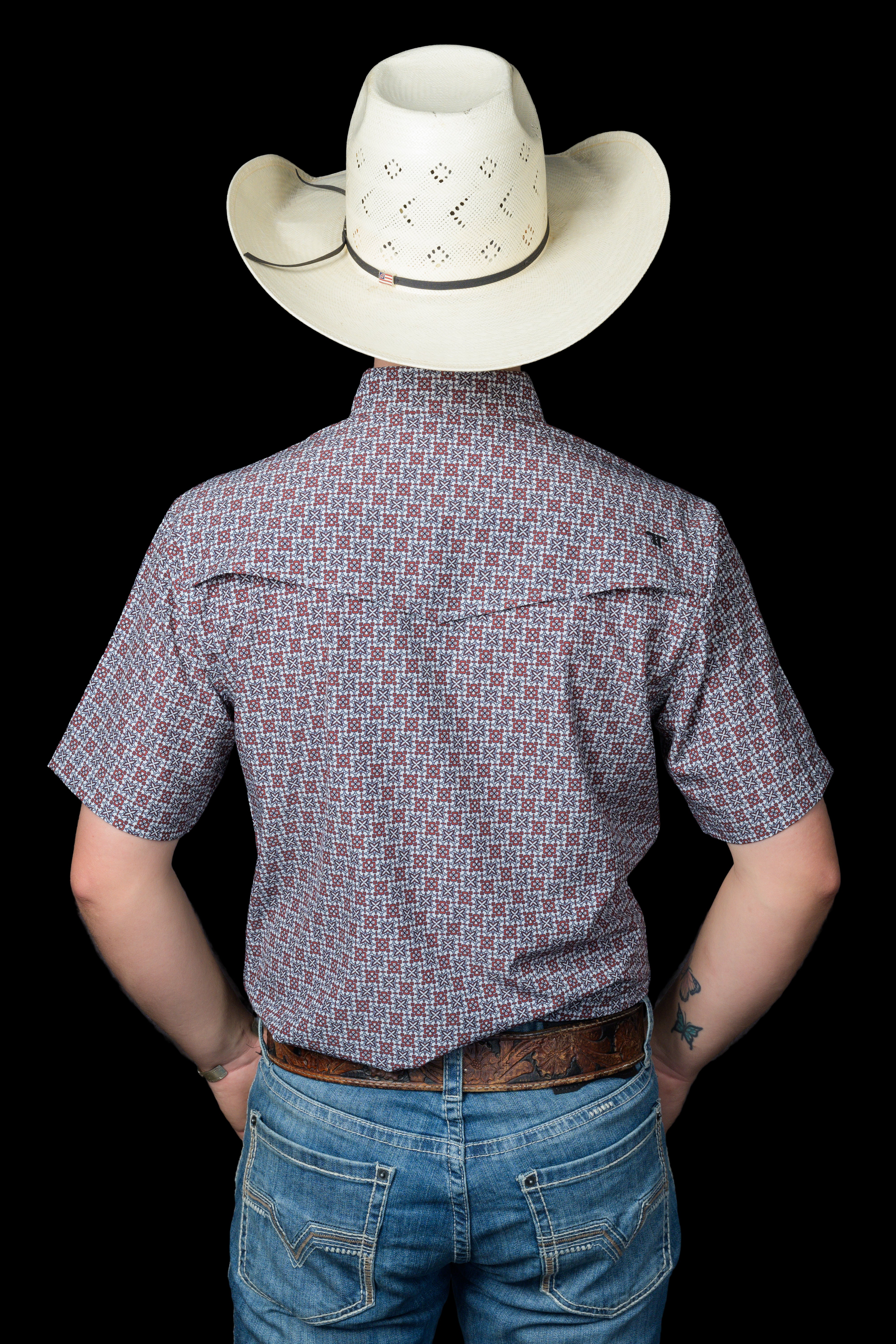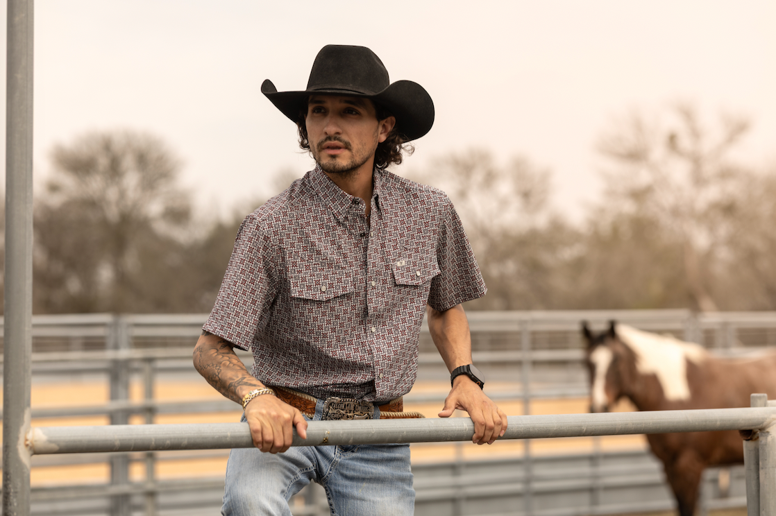 A muted red micro-pattern that adds texture without overpowering the look. Crafted in our short-sleeve snap with breathable, flexible fabric, it’s an everyday western staple designed for comfort, movement, and versatility.