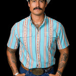 A bright turquoise stripe with subtle contrast detailing, crafted for a sharp western look. Soft-stretch, breathable fabric delivers all-day comfort without sacrificing structure or style.