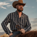 A bold blue stripe with a timeless western silhouette, crafted in our original long-sleeve snap. Soft-stretch, breathable fabric and performance details make it a dependable staple for long days and warm nights.