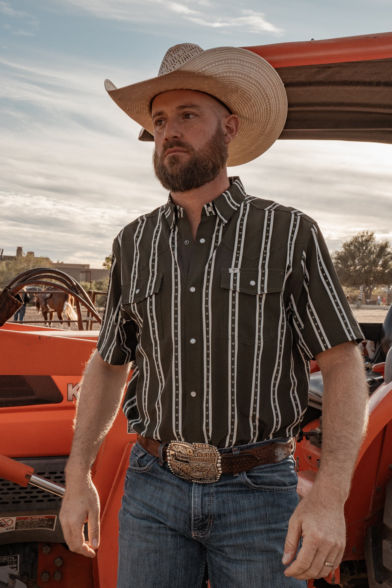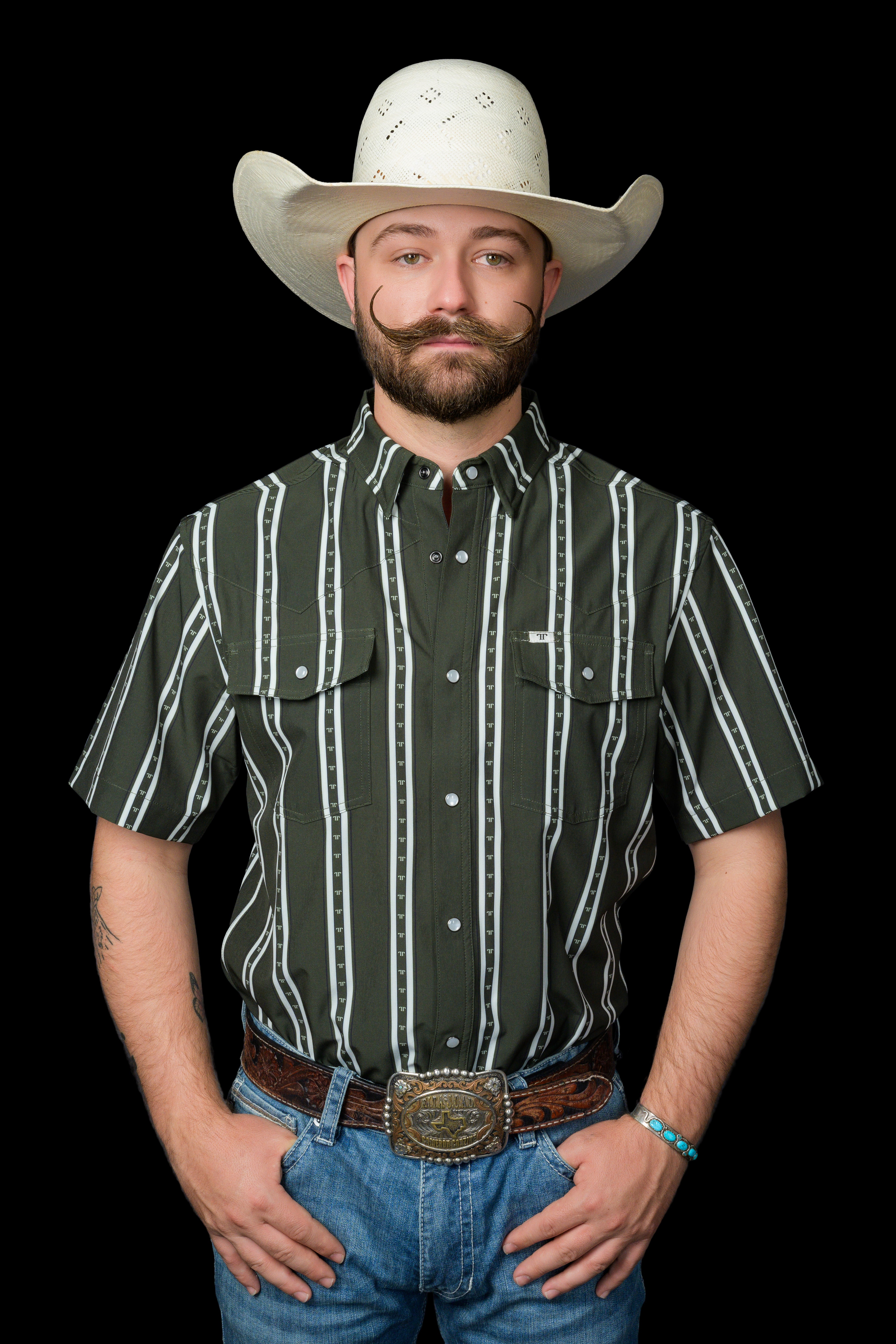 A bold green stripe with a timeless western silhouette, crafted in our original short-sleeve snap. Soft-stretch, breathable fabric and performance details make it a dependable staple for long days and warm nights.