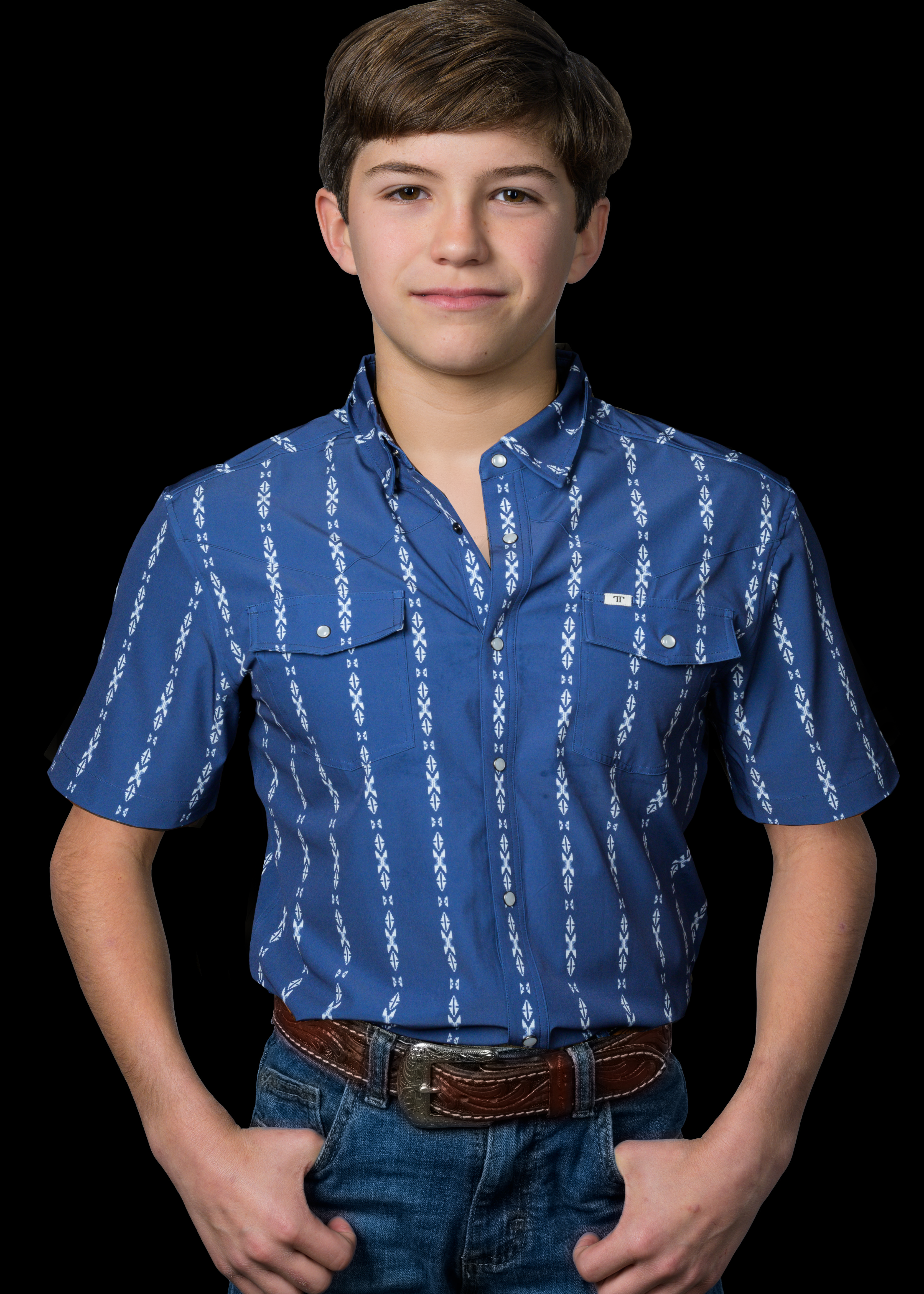 Kid's Maverick in Blue Short Sleeve Snap